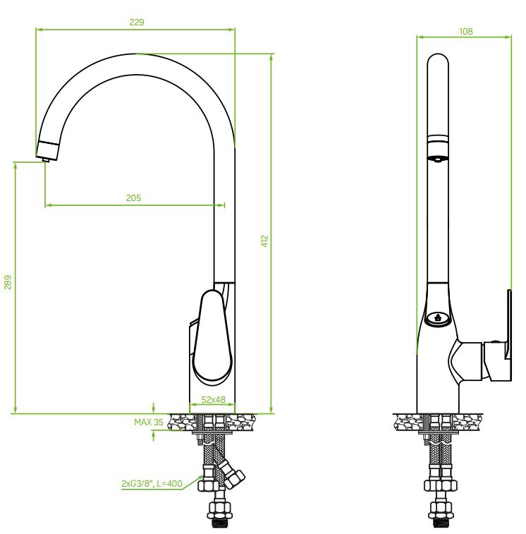Model baterii kuchennych z podłączeniem do filtra wody. Dzięki przyciskowi, który znajduje się w korpusie baterii, możemy pić przefiltrowaną wodę prosto z kranu. W zestawie baterii Carlo znajdziemy dodatkowy, trzeci wężyk, który podłączamy do filtra, montowanego pod zlewem. Instalacja jest łatwa i szybka, a sam filtr podlega recyklingowi. Oferowana dostępność na rynku filtrów umożliwia odpowiednie dopasowanie do własnych potrzeb i jakości wody, którą mamy w instalacji domowej. Filtrowaną wodą, możemy cieszyć się z reguły przez okres 6 miesięcy, zanim filtr będzie wymagał wymiany. Taki okres pozwoli zaoszczędzić na zakupie wody butelkowanej oraz przyczyni się do redukcji plastiku.