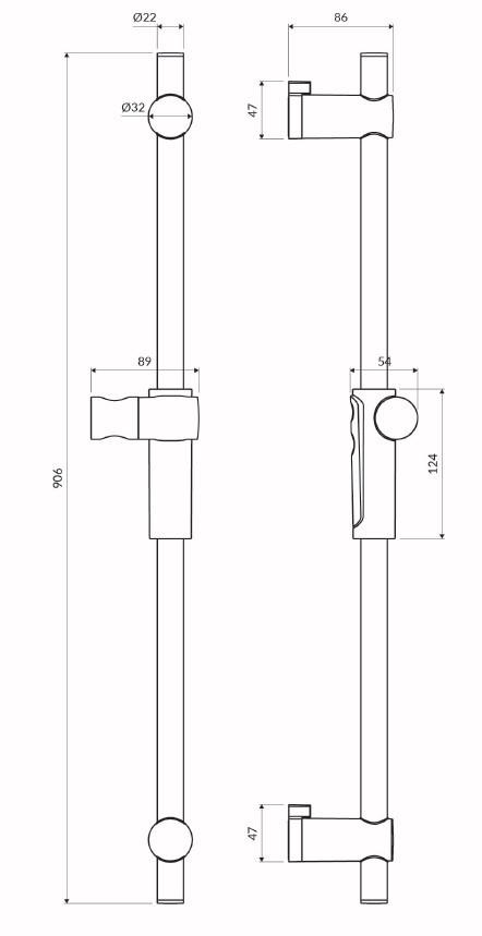 Długość: 90,5 cm, regulowany rozstaw mocowań: 24-85 cm