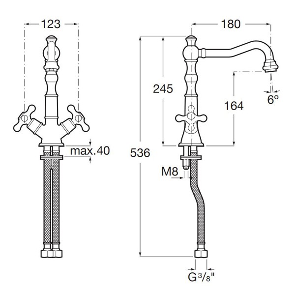 - Dwuuchwytowa bateria umywalkowa sztorcowa wysoka