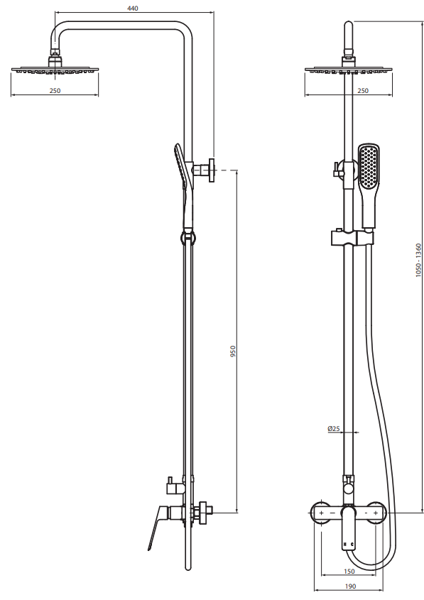 KOLUMNA NATRYSKOWA Z BATERIĄ MIESZAKOWĄ