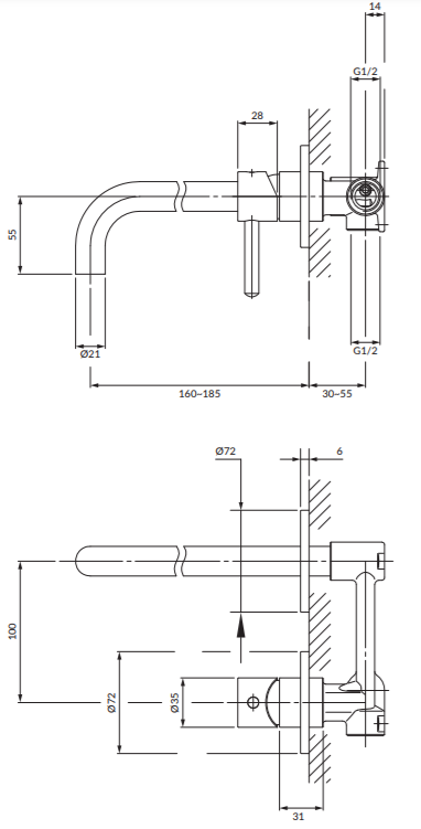 - zasięg wylewki od powierzchni płytek: 18,5 cm
