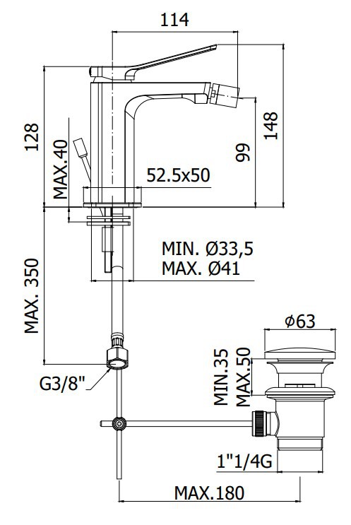 BATERIA BIDETOWA STOJĄCA (BEZ KORKA)