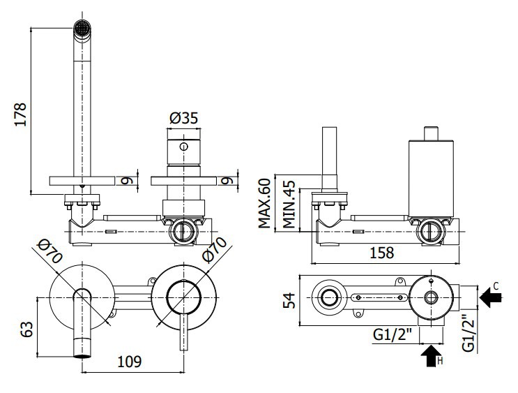 BATERIA UMYWALKOWA PODTYNKOWA 178MM