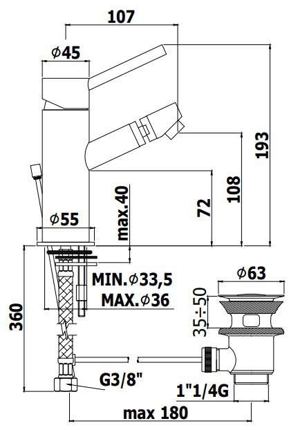 Paffoni Elle Bateria bidetowa pionowa (z korkiem click-clack) czarna (EL131KNO)