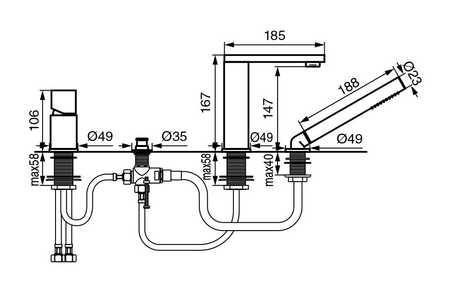 Emmevi Rubinetterie Minu Bateria wannowa 4-otworowa (78120CR)