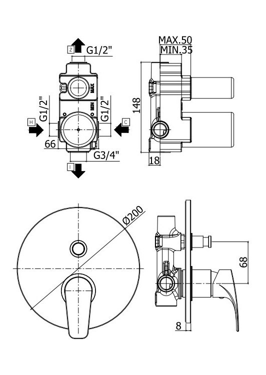 Omnires Fresh Termostatyczna bateria prysznicowo-wannowa podtynkowa 3-wyjściowa, element...