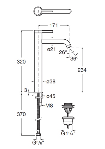 Paffoni Level Bateria umywalkowa wysoka ( z korkiem clickclack) (LES081KCR)