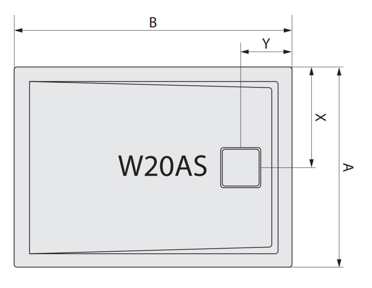 Odpływ punktowy umieszczony na dłuższym boku |