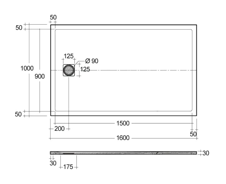Vixor Lumeo brodzik konglomeratowy prostokątny z odpływem na krótszym boku Antracytowy 150 x 90...