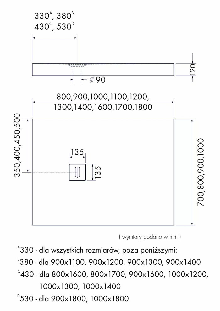 Ronal Bathrooms Calce Brodzik prostokątny asymetryczny MineraLite 230x70 cm antracyt (W31AS23007017)