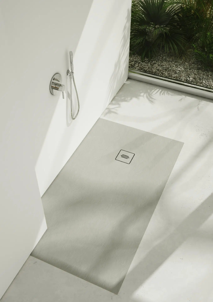 Powierzchnia o cementowej, kamienistej strukturze (RAL 7038) z klasą antypoślizgową „A” (wg DIN 16165 – zał. A) zapewnia komfort użytkowania i zmniejsza ryzyko poślizgnięcia się. Seria idealnie wpasowuje się do każdej łazienki, ponieważ istnieje możliwość docięcia brodzika do wymaganego wymiaru.