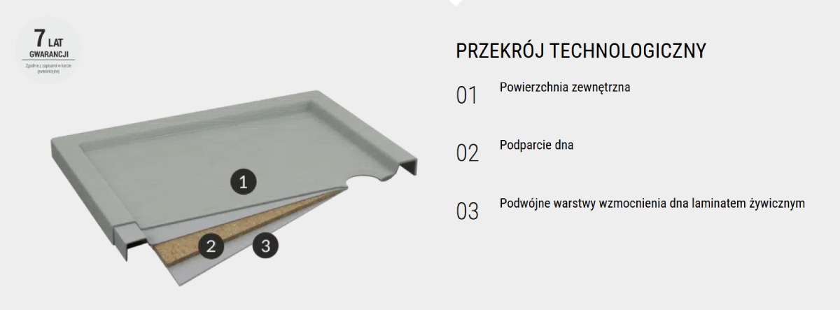 Niewielka wysokość brodzika – zaledwie 4,5 cm – umożliwia jego montaż bezpośrednio na podłodze. Dzięki temu prysznic pozostaje wygodny w dostępie, a instalacja jest szybka i bezproblemowa.