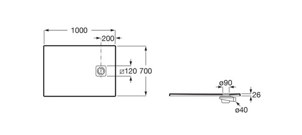 - Odpływ położony blisko krótszego boku.