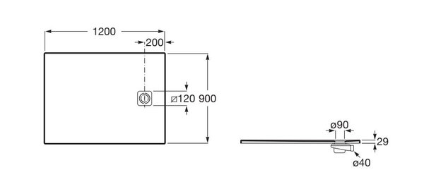 Roca Magma Brodzik prostokątny Stonex® 120 x 90 cm niski syfon kolor perłowy (APE014B038403630)