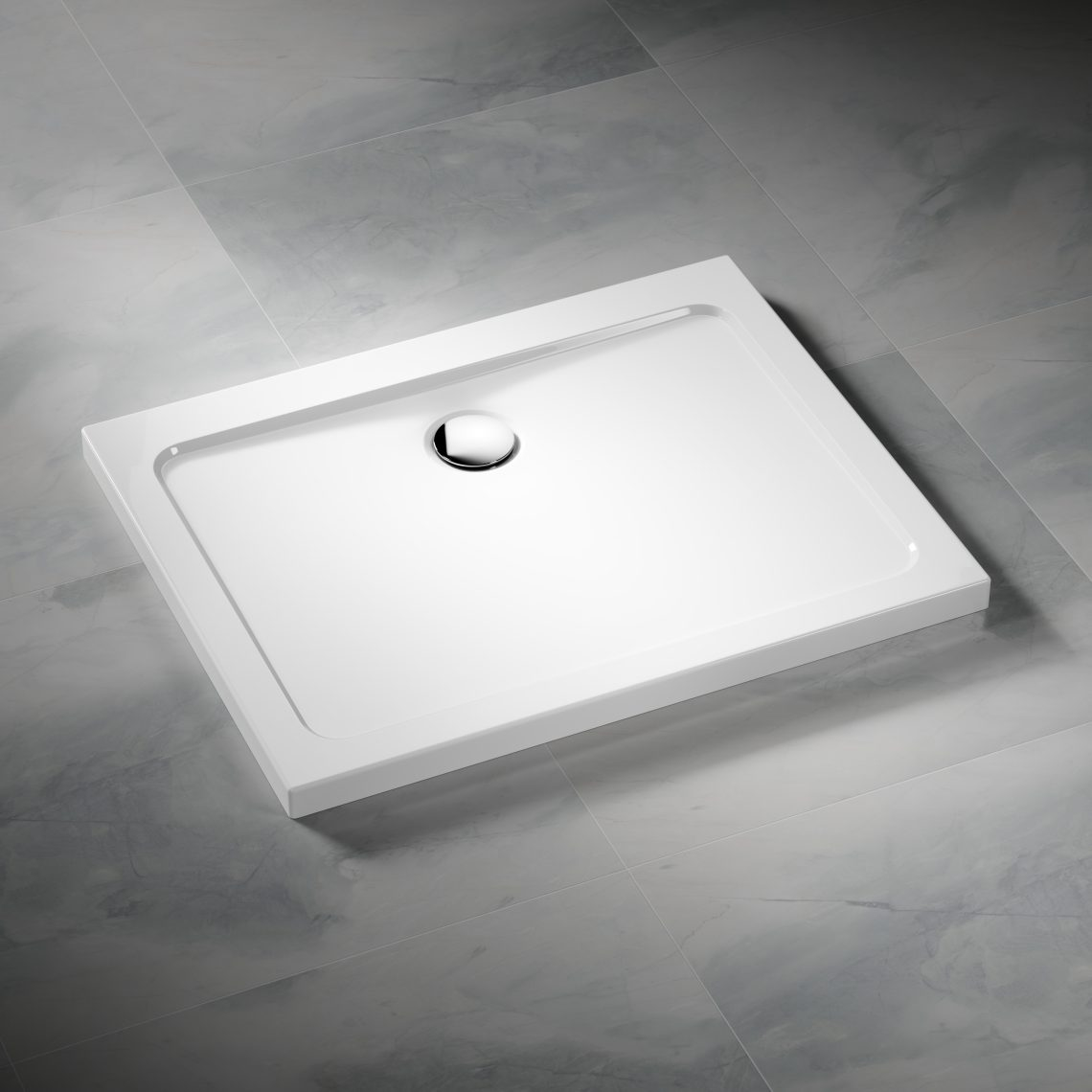 Brodzik akrylowy prostokątny z odpływem na dłuższym boku Biały 120 x 80 cm