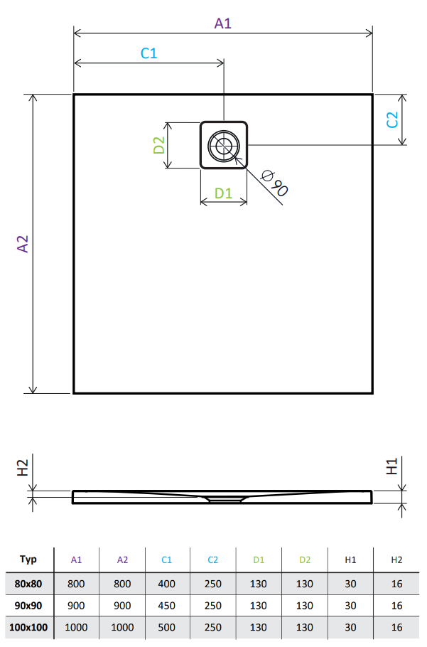 brodzik konglomeratowy kwadratowy Czarny 90x90 cm