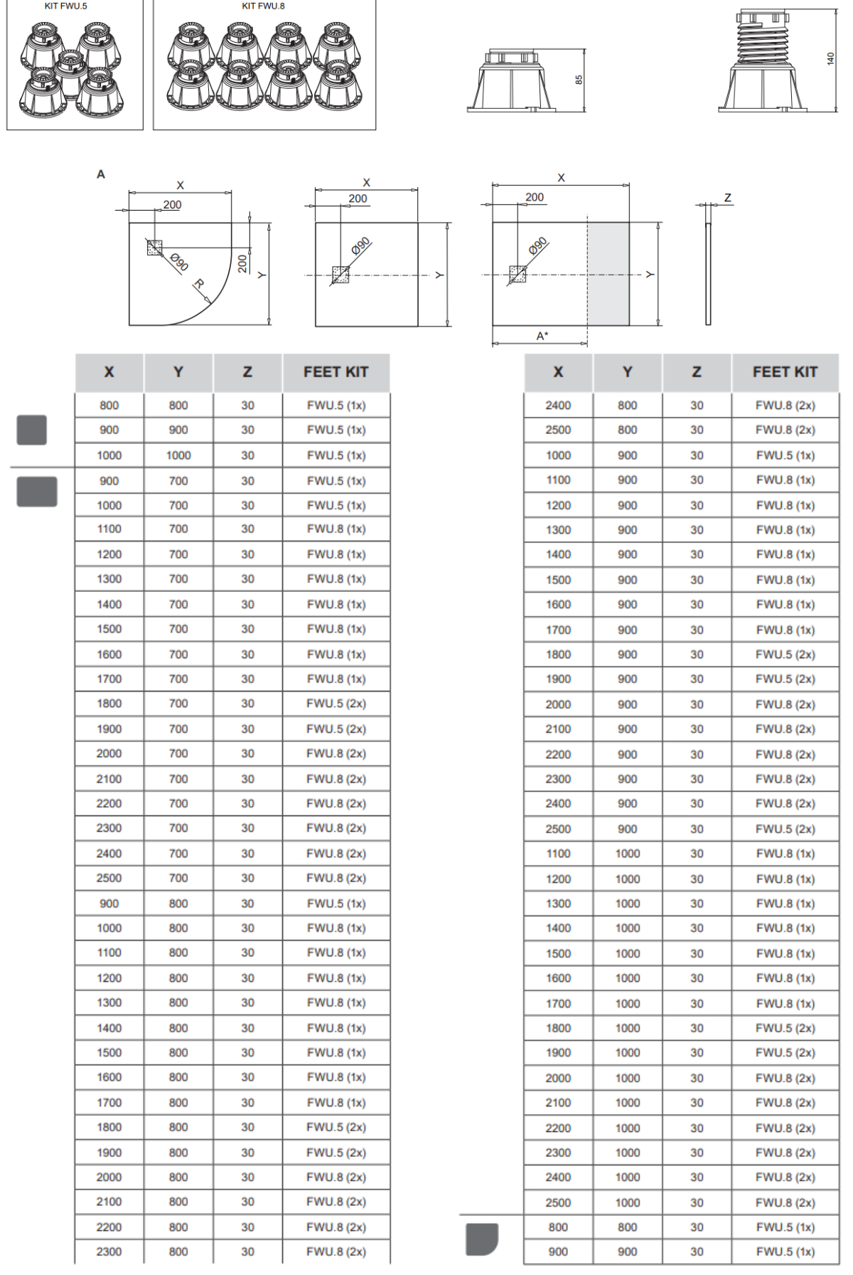 - Na regulowanych nóżkach: Możliwość montażu z aluminiową obudową lub obudowania brodzika płytkami ceramicznymi.