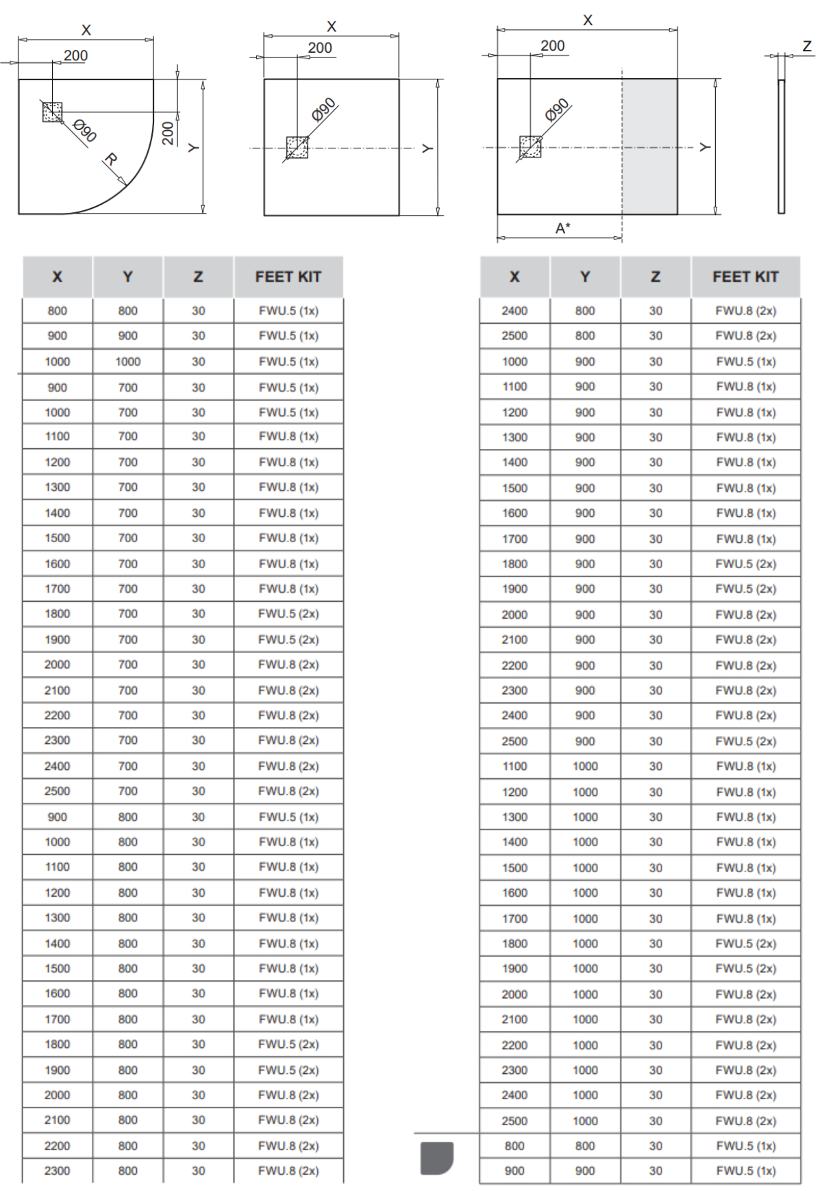 - Na regulowanych nóżkach: Możliwość zabudowy brodzika płytkami lub zastosowania aluminiowej obudowy.