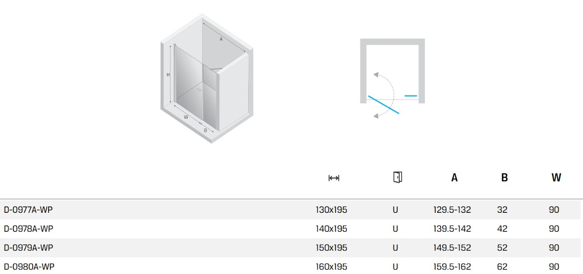 Drzwi wnękowe 1D U 140x195 szkło czyste 6mm Active Shield 2.0 - wspornik równoległy