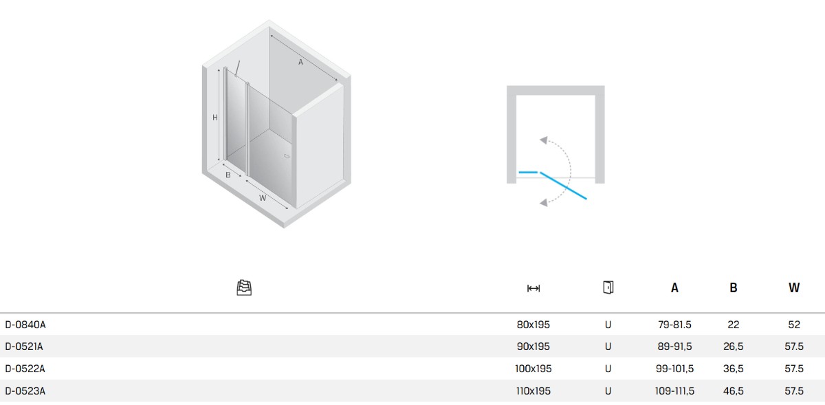 SanSwiss Arelia D20K Drzwi Przesuwno-składane 100x190 cm Srebrny Polerowany (D20K1004007)