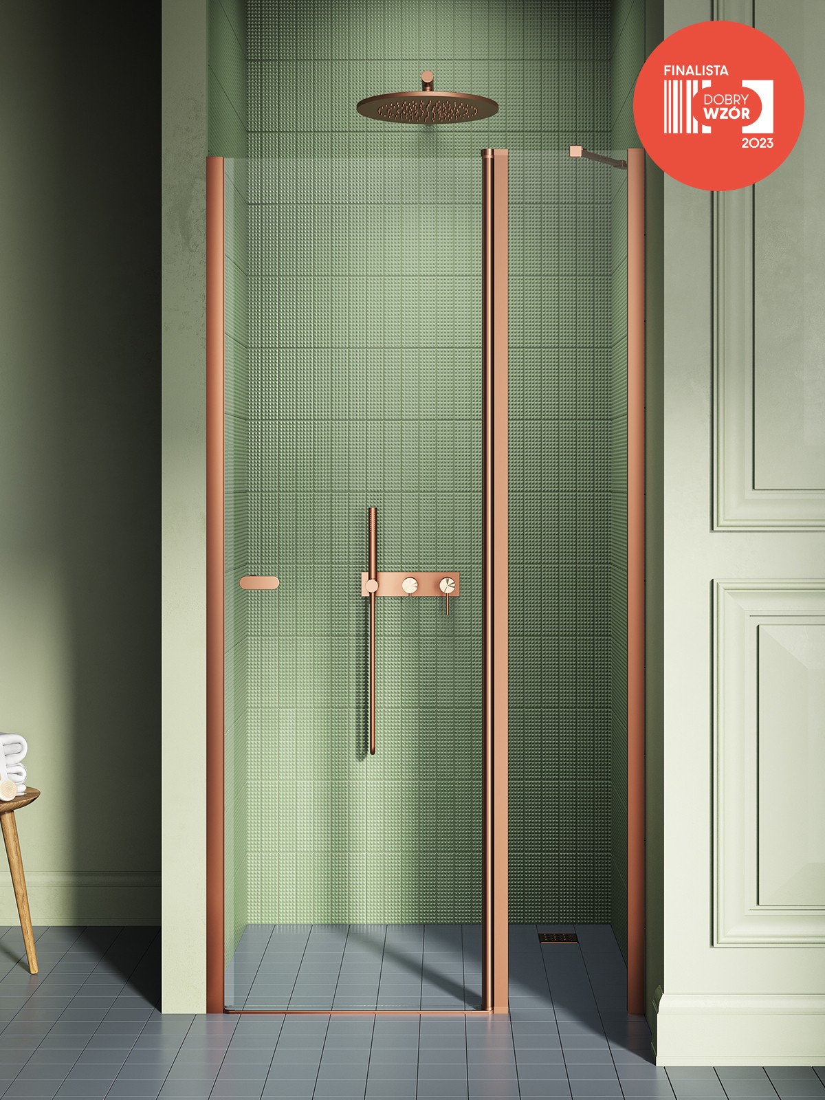 Model New Soleo Copper Brushed to propozycja dla osób poszukujących nieszablonowych rozwiązań, które nadają łazience ciepły, a zarazem niezwykle nowoczesny charakter. Drzwi wyróżniają się eleganckimi, miedzianymi detalami o matowym, szczotkowanym wykończeniu. To szlachetna alternatywa dla klasycznego chromu czy złota, która doskonale komponuje się z naturalnymi materiałami, takimi jak kamień, beton czy drewno, tworząc atmosferę luksusowego pokoju kąpielowego.