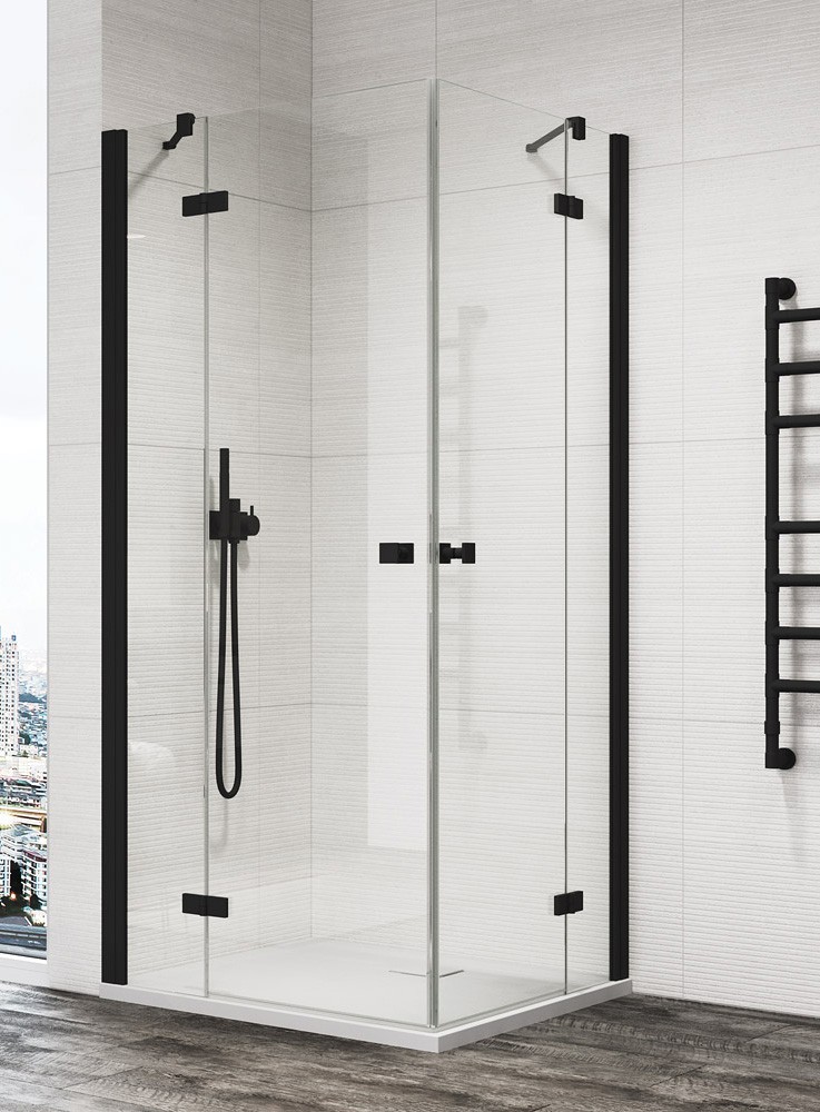 SanSwiss Annea AN13 D+G Kabina Prysznicowa BLACK 80x80 cm Szkło Przezroczyste (AN13G08000607+AN13D08000607)