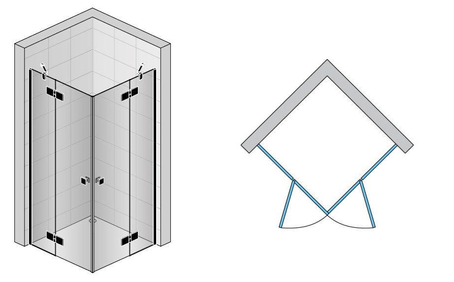 | Zawias szkło-szkło z systemem unoszenia, otwierany na zewnątrz. | ![]() |