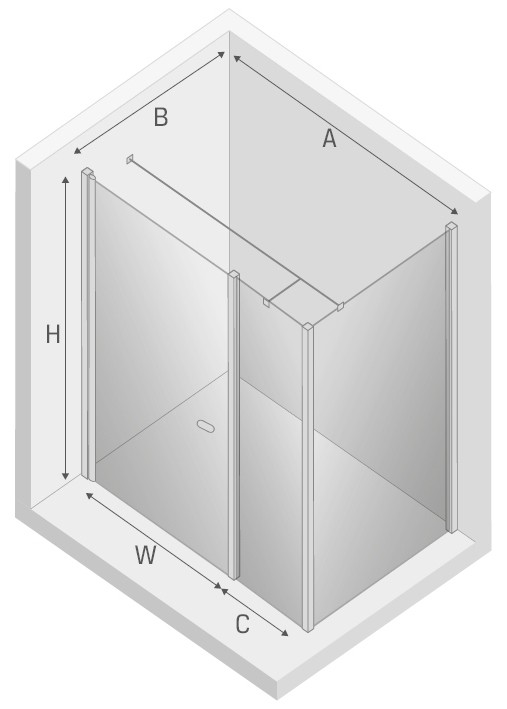 Kabina Prysznicowa Narożna Prostokątna Plus, Drzwi Uchylne Pojedyncze, Szkło Przezroczyste 6 mm