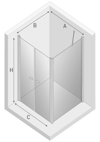 Kabina Prysznicowa Narożna Prostokątna, Drzwi Wahadłowe Podwójne, Szkło Przezroczyste 6 mm
