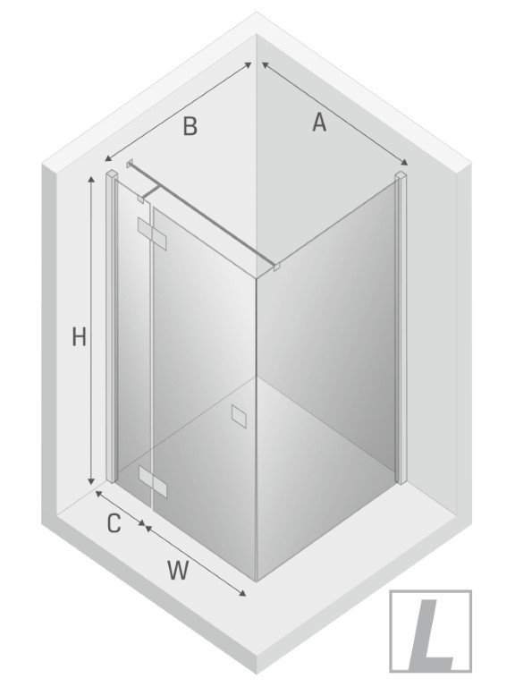 KABINA PRYSZNICOWA NAROŻNA PROSTOKĄTNA, DRZWI UCHYLNE POJEDYNCZE LEWE 110X80 CM, SZKŁO PRZEZROCZYSTE 6 MM