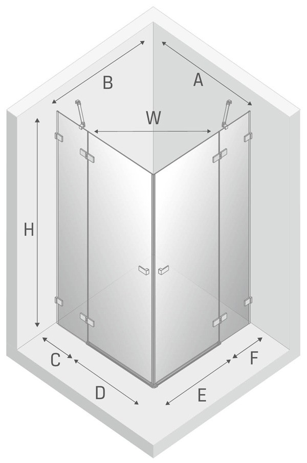 Kabina Prysznicowa Narożna Prostokątna, Drzwi Uchylne Podwójne, Szkło Przezroczyste 6 mm
