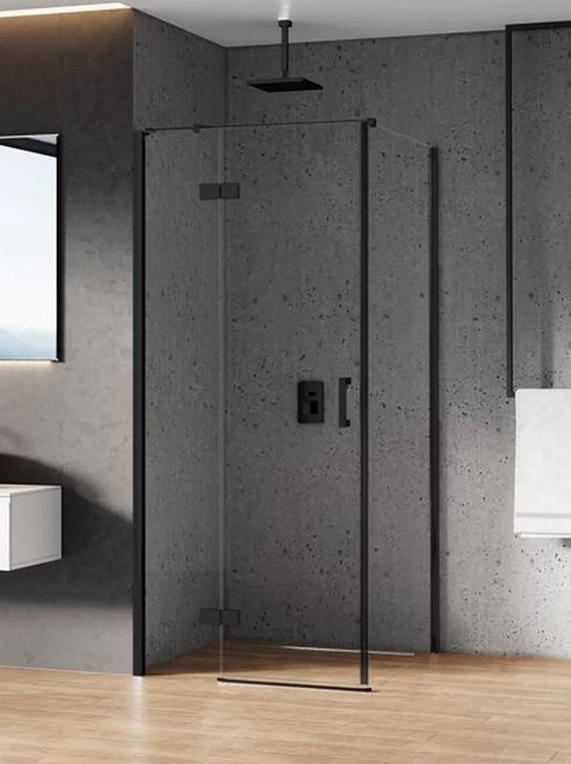 New Trendy New Renoma Black Kabina Prysznicowa Narożna Kwadratowa Drzwi Uchylne Pojedyncze Lewe 80x80 cm (D-0201A/D-0110B-WP)