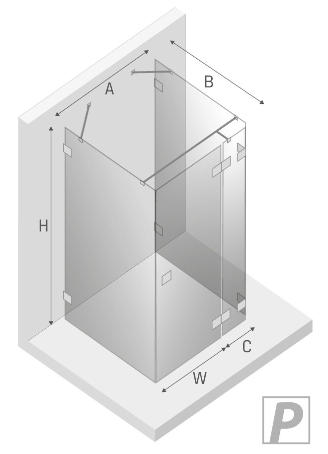KABINA KWADRATOWA PRZYŚCIENNA P 120x120X200 CZYSTE 6MM ACTIVE SHIELD