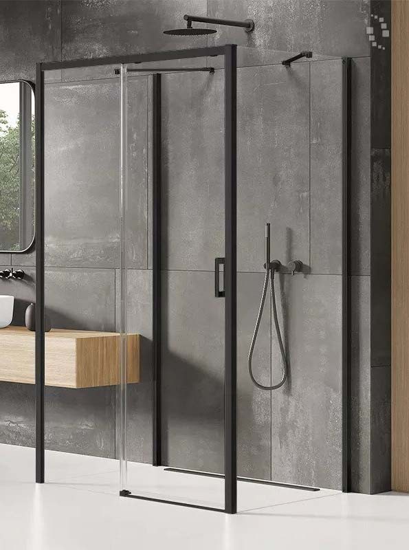 New Trendy Reflexa Black Kabina Prysznicowa Przyścienna Prostokątna Drzwi Uchylne Pojedyncze Lewe...