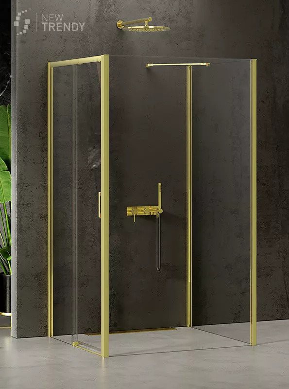 New Trendy Nesta Kabina gold brushed 1D prostokątna lewa 90x100x200 cm Active Shield 2.0 (K-4409)