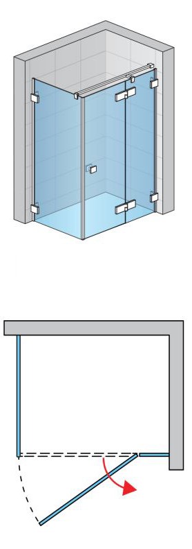 Drzwi jednoczęściowe ze ścianką stałą bez profilu + Ścianka boczna, Szkło Przezroczyste