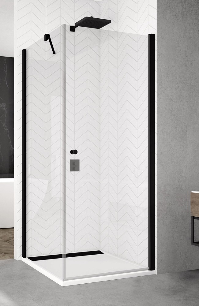 Drzwi jednoczęściowe + Ścianka boczna czarna, Szkło przezroczyste
