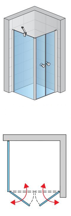 SanSwiss Divera D22T2 Drzwi Prysznicowe Wahadłowe Dwuczęściowe Chrom 70x200 cm Szkło...