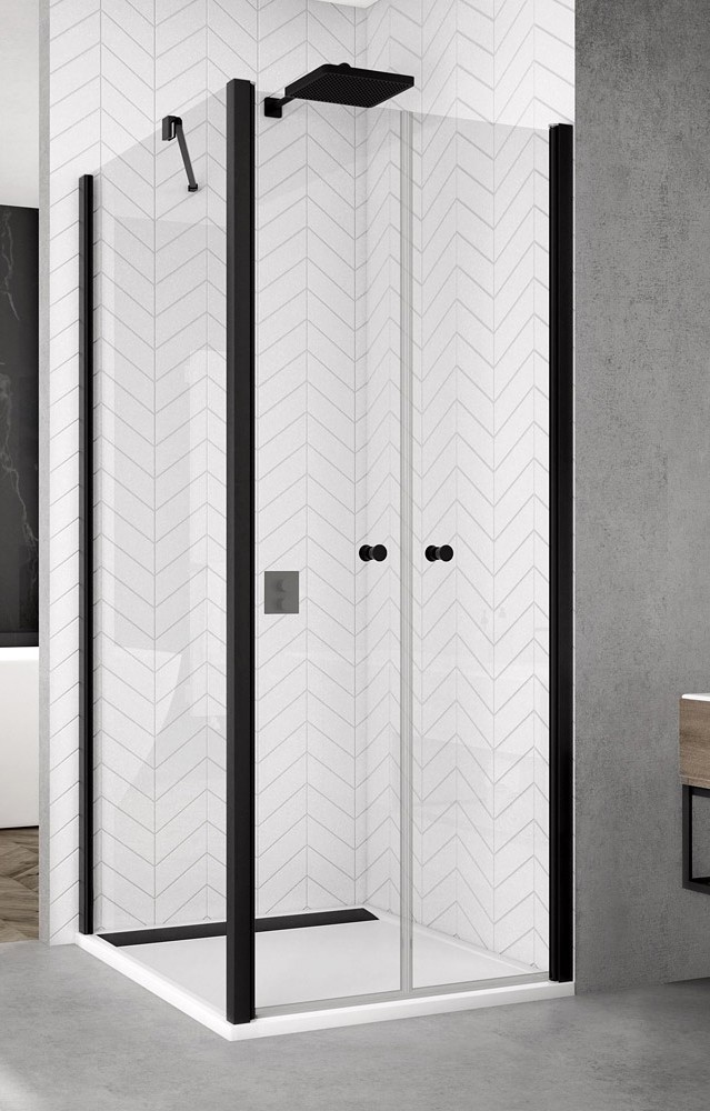 Drzwi dwuczęściowe + Ścianka boczna czarna, Szkło przezroczyste