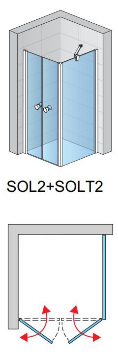 SanSwiss Solino SOL2+ SOLT2 Kabina prysznicowa 2D 100x90x200 cm chrom, Szkło Przezroczyste (SOL210005007+SOLT209005007)