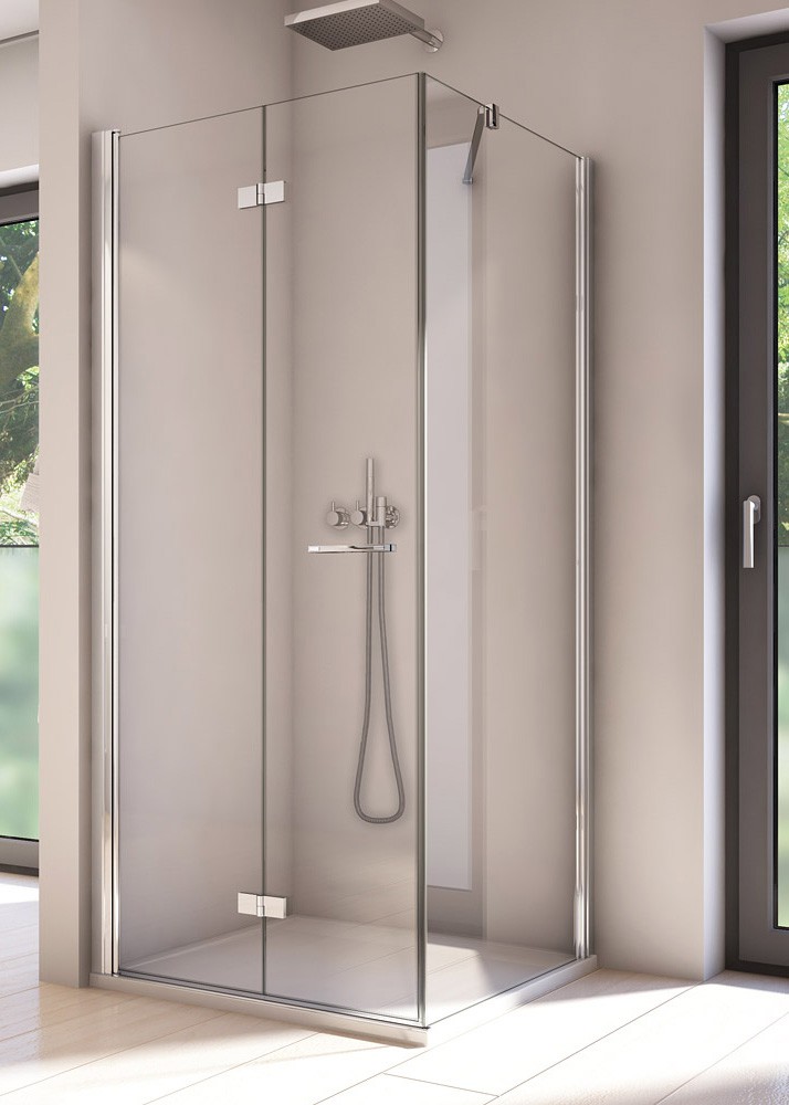 Drzwi dwuczęściowe składane + Ścianka boczna chrom, Szkło przezroczyste