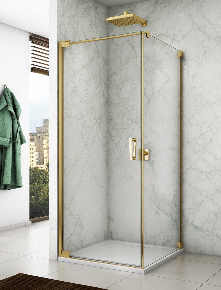 New Trendy Prime Light Gold Kabina Kwadratowa Przyścienna U 90x90x200 Przezroczyste 6mm Active...