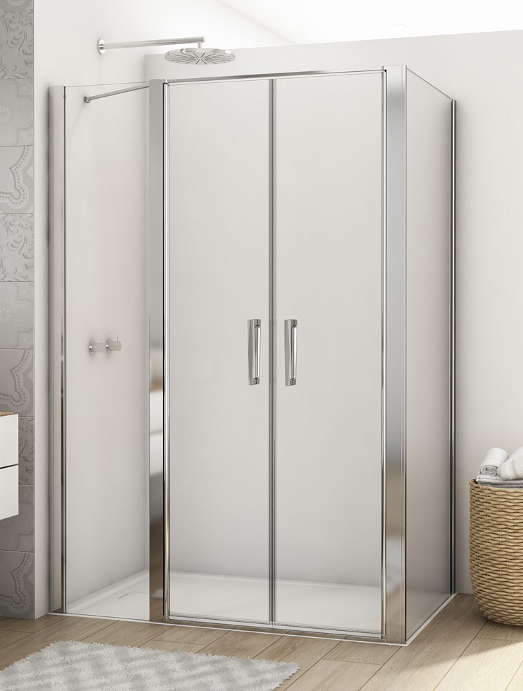 SanSwiss Divera D22T32+D22F1 Kabina ze ścianką drzwi wahadłowe chrom 110x140x200cm Szkło Przezroczyste(D22T32090205007 + D22F114