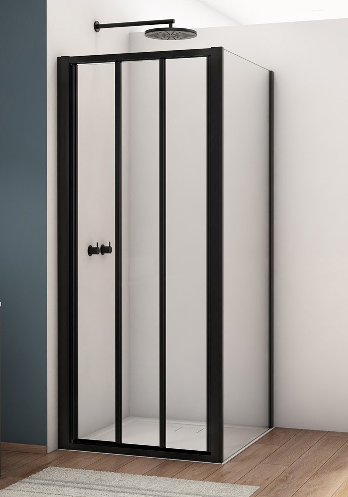 SanSwiss Divera D22S3+D22F1 Kabina prysznicowa drzwi 3-cz czarna 100x90x200 cm Szkło Przezroczyste (D22S31000607 + D22F10900607)