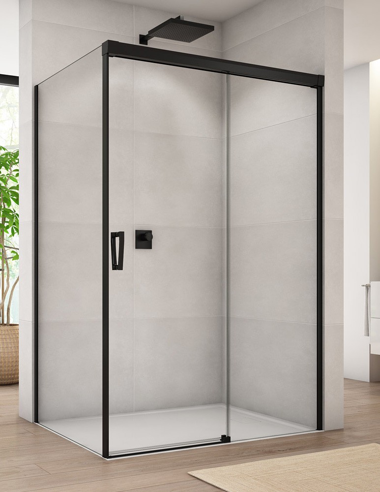 New Trendy Prime Black Kabina Prysznicowa Narożna Prostokątna Drzwi Przesuwne Pojedyncze Prawe...