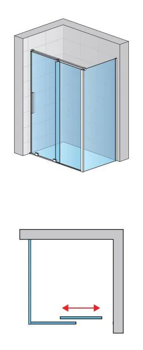 Drzwi rozsuwane dwuczęściowe + Ścianka boczna 90°