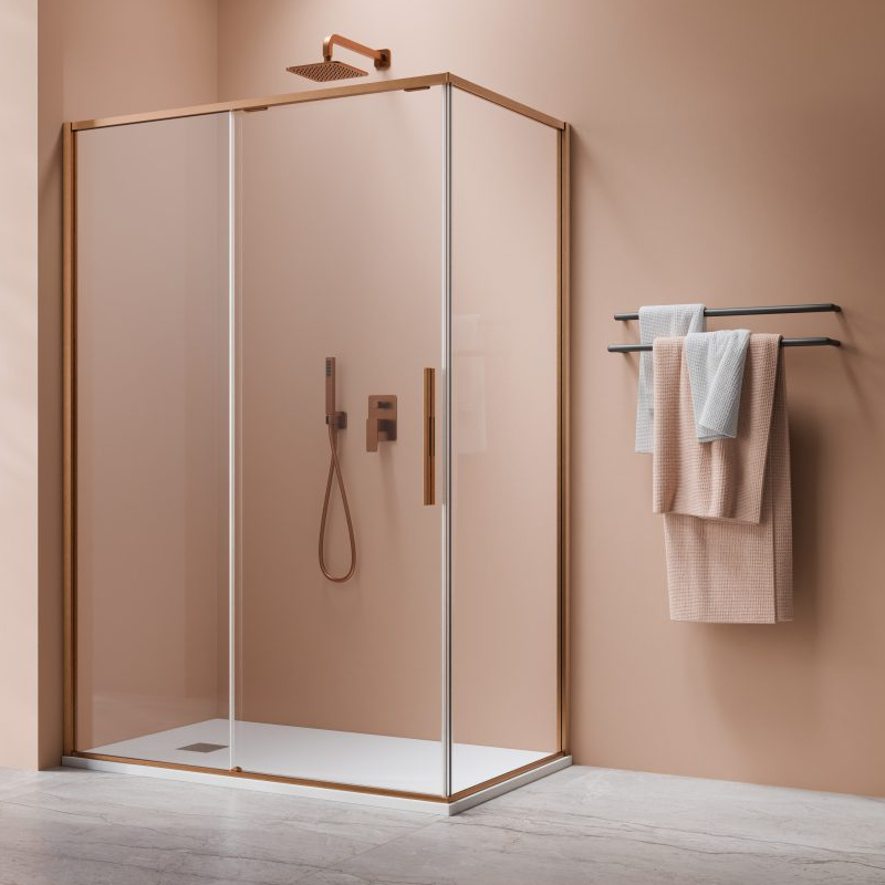 Vixor Tiso 6 Kabina prysznicowa prostokątna lewa Miedź szczotkowana 120x90 cm (N13-24120-93-01L+N13-60090-93-01L)