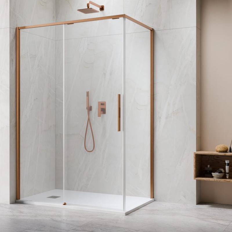 Vixor Tiso Lite Kabina prysznicowa prostokątna lewa Miedź szczotkowana 110x80 cm (N14-24110-93-01L+N14-60080-93-01L)