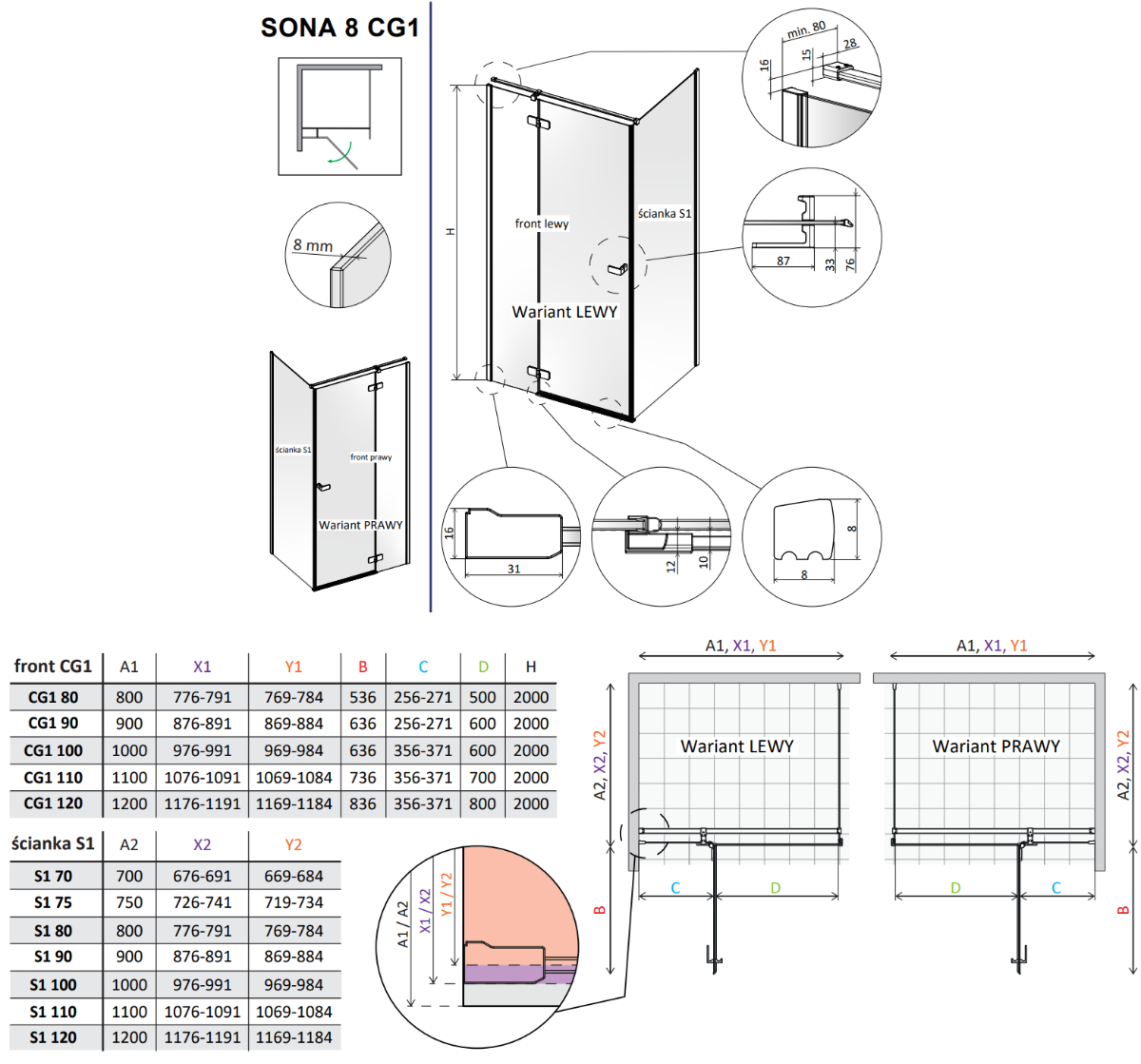 Seria Sona 8 to wyjątkowe kabiny prysznicowe z drzwiami otwieranymi na zewnątrz, które stanowią idealne połączenie nowoczesnej formy z solidnym wykonaniem. Konstrukcja oparta na bezpiecznym szkle hartowanym o grubości 8 mm gwarantuje nie tylko trwałość, ale i wysoki komfort codziennego użytkowania. Istotnym atutem tego modelu są zawiasy zlicowane z taflą szkła – to funkcjonalne rozwiązanie eliminuje trudnodostępne zakamarki, co znacząco ułatwia utrzymanie kabiny w nienagannej czystości.
