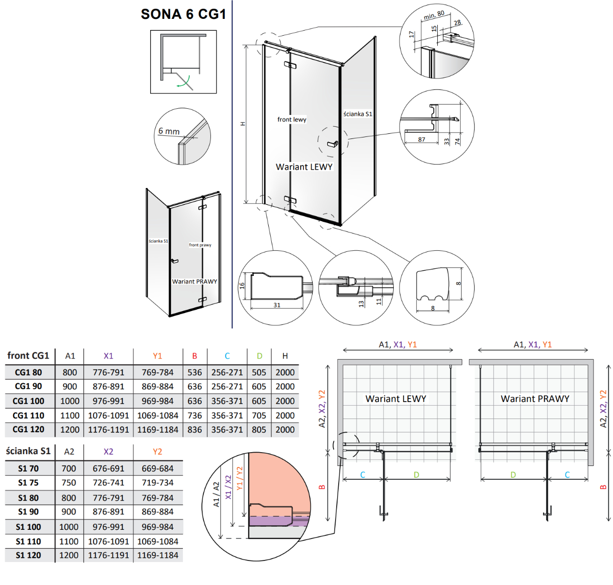 Seria Sona 6 to wyjątkowe kabiny prysznicowe z drzwiami otwieranymi na zewnątrz, które stanowią idealne połączenie nowoczesnej formy z solidnym wykonaniem. Konstrukcja oparta na bezpiecznym szkle hartowanym o grubości 6 mm gwarantuje nie tylko trwałość, ale i wysoki komfort codziennego użytkowania. Istotnym atutem tego modelu są zawiasy zlicowane z taflą szkła – to funkcjonalne rozwiązanie eliminuje trudnodostępne zakamarki, co znacząco ułatwia utrzymanie kabiny w nienagannej czystości.